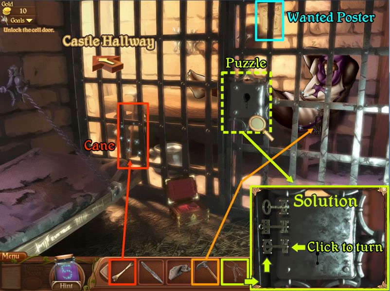 • You will collect your Hint Jar and a Medallion in the Jail Cell in a box that is delivered to you which you later find out is a gift from the Gypsy.