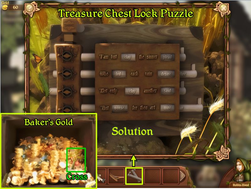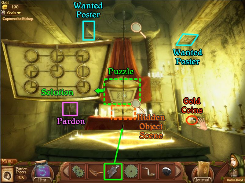 robinsquest.jpgRobin's Quest has a unique structure that differs from most casual games. For starters, you don't follow the hero from point A to point B. Instead, you have a great amount of freedom to explore areas on your own, solving puzzles and completing scenes in whatever order you like. You receive meta-quests that continue as you move around, things like finding pieces of Friar Tuck's pardon letter. The papers can be found in several of the scenes early on, you just have to keep it in mind to watch for them. You're also hunting for wanted posters of yourself, collecting them and ripping them to shreds so the guards can't recognize you.