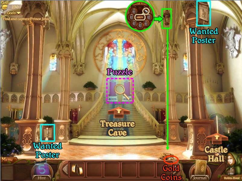 • When you enter the Throne Room Prince John will disappear through a secret panel in back of the thrones.